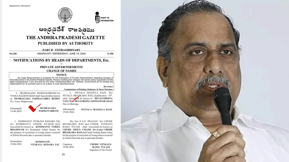 లెక్కింపు రోజున ఆయన విలేకరుల సమావేశం నిర్వహించి, అందరికీ క్షమాపణలు చెప్పి, తన పేరును మార్చుకోవడానికి లాంఛనాలను ప్రారంభించినట్లు ధృవీకరించారు. తాజా పరిణామంలో, ఆంధ్రప్రదేశ్ ప్రభుత్వ గెజిట్ ఆయన కొత్త పేరు పద్మనాభ రెడ్డిని అధికారికంగా గుర్తించింది. గతంలో జనసేనా పార్టీలో చేరడానికి ఆసక్తి చూపినప్పటికీ ముద్రగడ ఎన్నికలకు ముందు వైఎస్ఆర్ కాంగ్రెస్ పార్టీ (వైసీపీ) లో చేరారు.