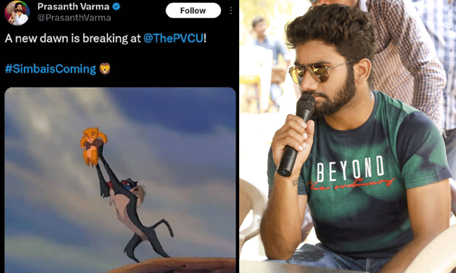 ‘ది లయన్ కింగ్’ చిత్రం నుంచి సింబాను ఎత్తుతున్న రఫీకి ఫోటోను షేర్ చేసిన ప్రశాంత్ వర్మ..’ @ThePVCU #SimbaisComing లో కొత్త డాన్ బ్రేకింగ్” అని ట్వీట్ చేశారు. అతను దానిని అధికారికంగా వెల్లడించనప్పటికీ, సింబా మరెవరో కాదు మోక్షజ్ఞ అని ప్రజలు అనుకుంటున్నారు.